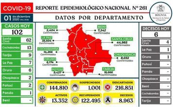 Bolivia registra 171 nuevos casos de COVID-19 y la cifra total...