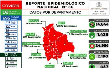 Salud reporta 39 casos nuevos de coronavirus y suben a 1.053 los confirmados en Bolivia